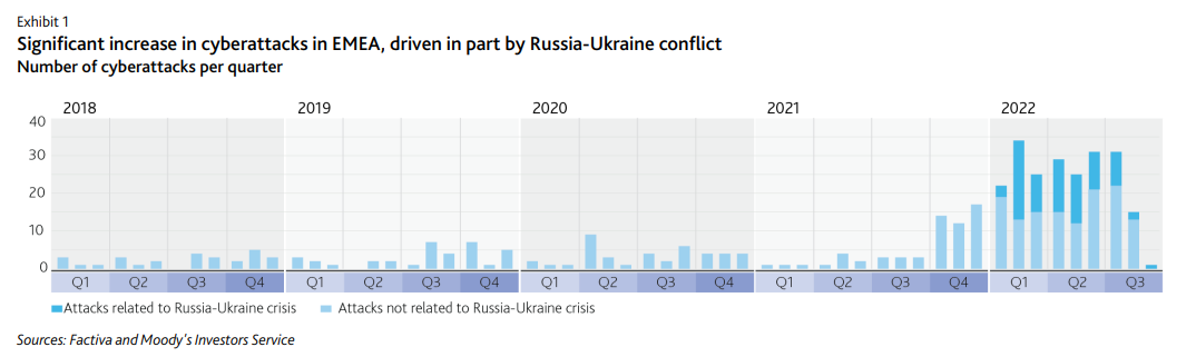 The number of cyberattacks is rising in Europe and cybersecurity is becoming part of companies’ general business risk backdrop, Moody’s Investors Service has warned.
