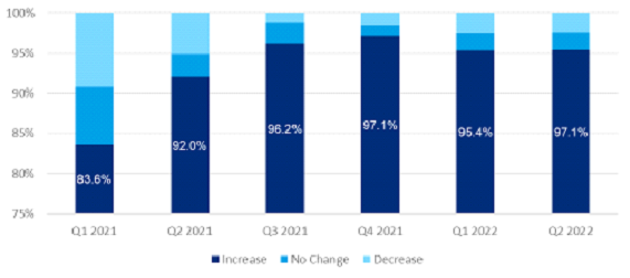 ⦁ 97% of insureds received a rate increase in the Q2 2022. (see figure 1)